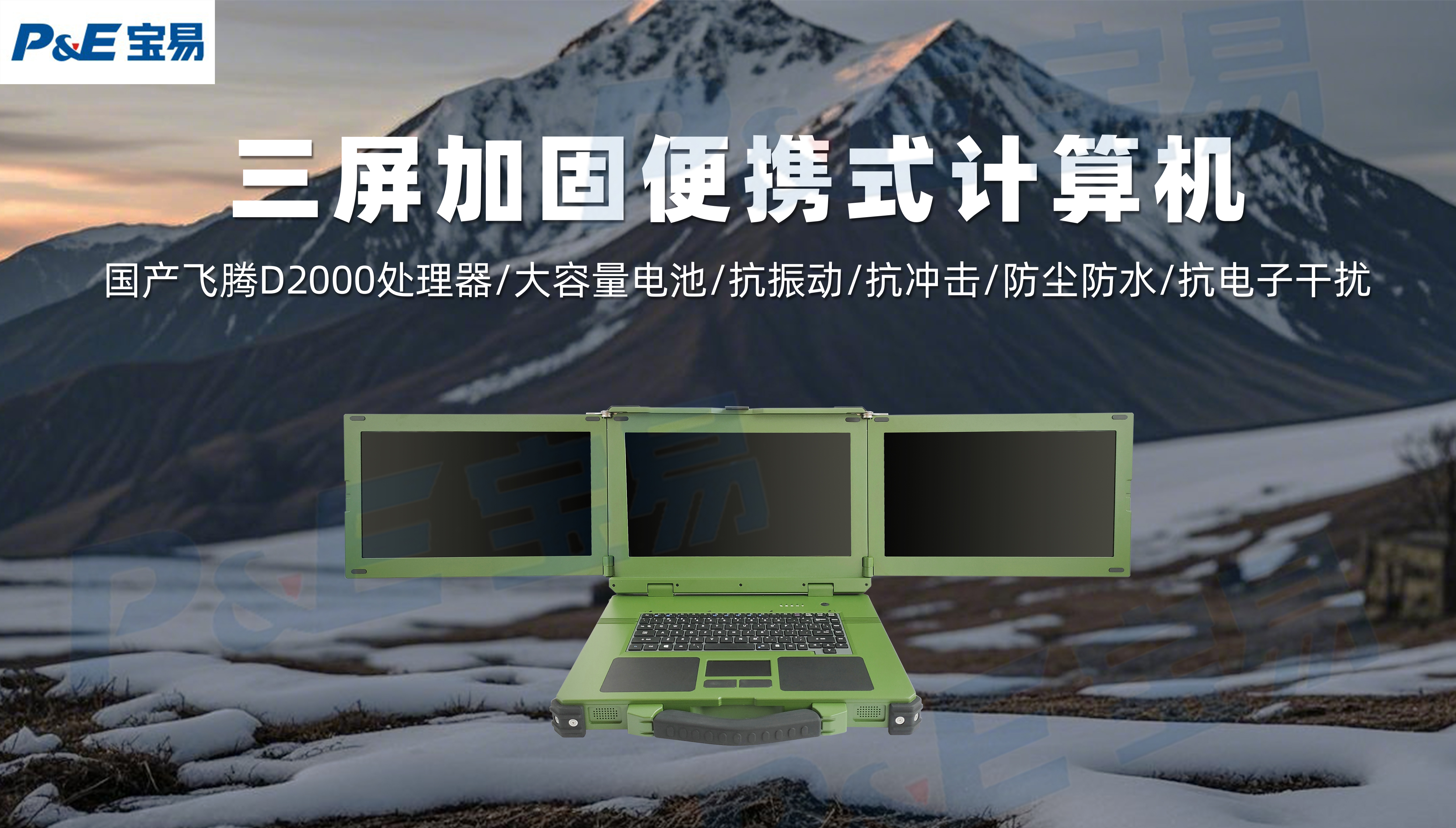 寶易三屏加固便攜式計(jì)算機(jī)PER-J15A1701-QT-F,為特殊行業(yè)設(shè)計(jì),滿(mǎn)足野外惡劣環(huán)境下移動(dòng)工作的使用要求;國(guó)產(chǎn)飛騰D2000處理器,搭配4G獨(dú)立顯卡,支持三屏顯示,大容量電池,可定制擴(kuò)展艙,滿(mǎn)足各種計(jì)算運(yùn)算需求;整機(jī)采用鋁合金一體成型外殼,寬溫、抗振動(dòng)、抗沖擊、防塵防水、抗電子干擾設(shè)計(jì),高可靠與高性能的完美結(jié)合,在極端惡劣環(huán)境中也能毫無(wú)障礙的流暢工作運(yùn)行;產(chǎn)品能夠滿(mǎn)足GJB 367A-2001,GJB 151B-2013關(guān)于振動(dòng)、沖擊、電磁兼容、三防、鹽霧、霉菌等相關(guān)要求,具有高可靠性和穩(wěn)定性,是軍事應(yīng)用上的理想之選。